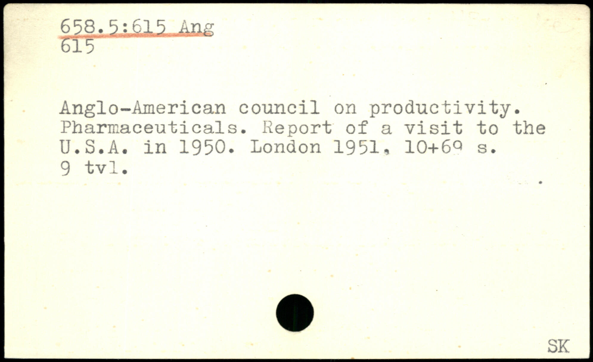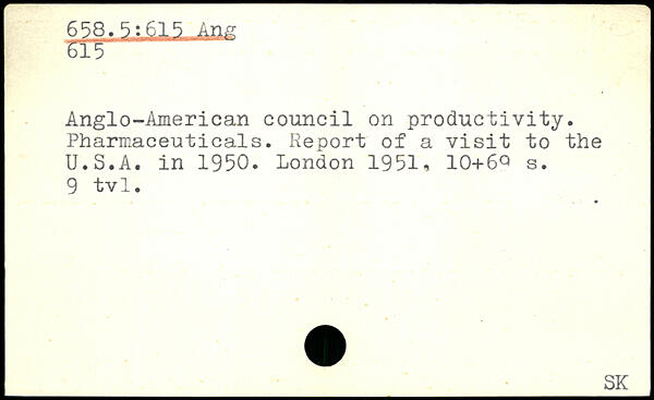 Anglo-American council on productivity. Pharmaceuticals. Report of a visit to the U.S.A. in 1950.
