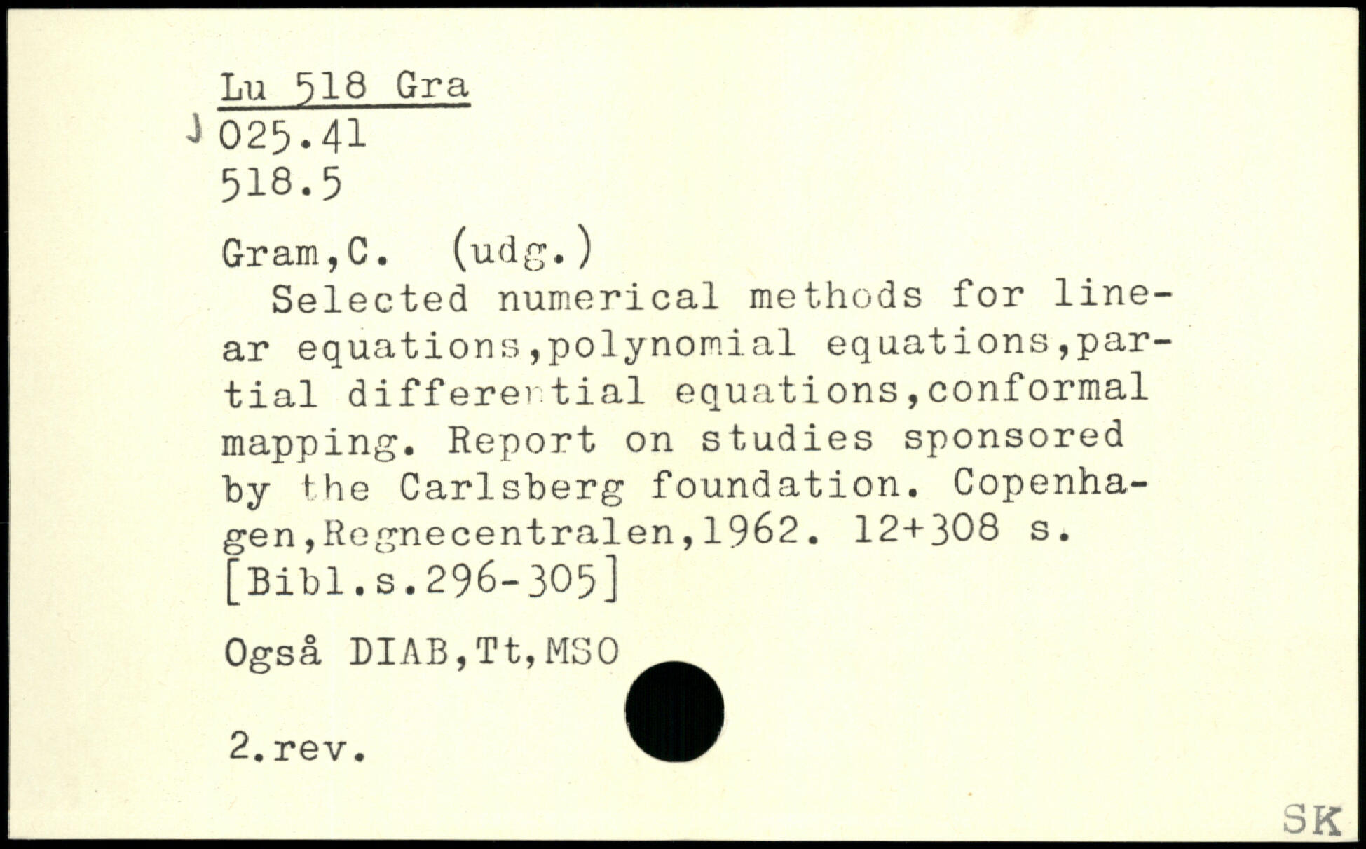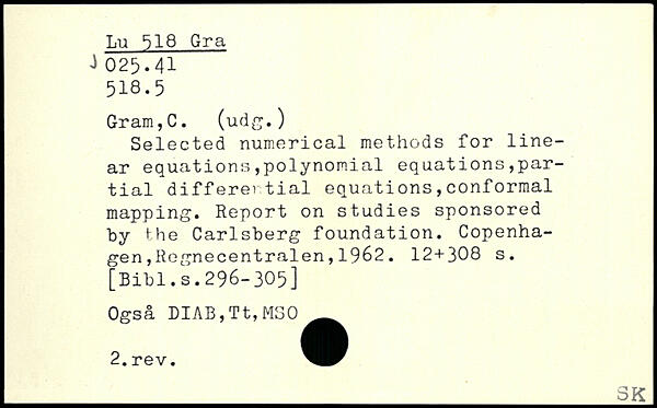 Selected numerical methods for linear equations,polynomial equations,partial differential equations,conformal mapping. Report on studies sponsored by the Carlsberg foundation.