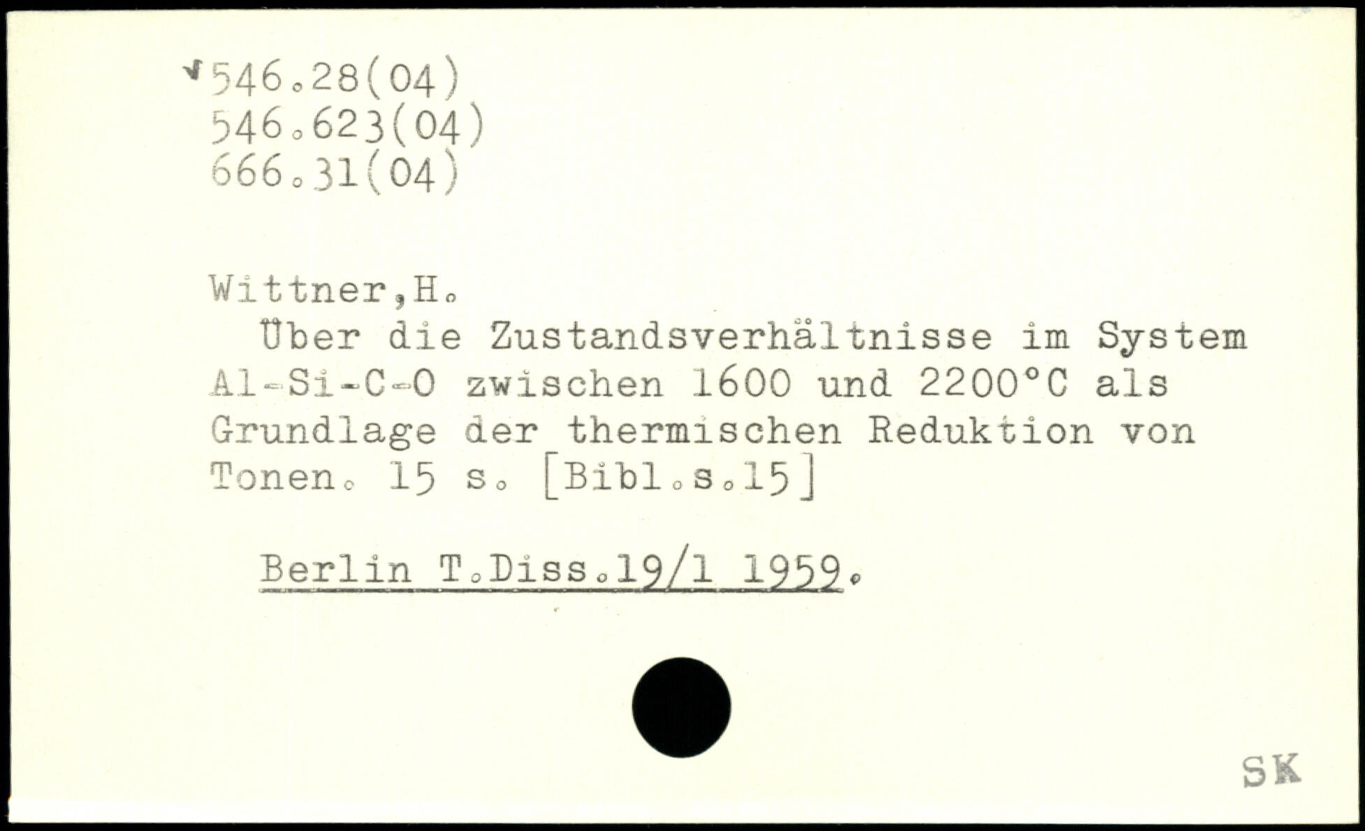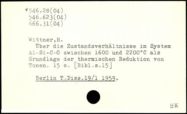 Uber die Zustandsverhältnisse im System Al-Si-C-O zwischen 1600 und 2200.C als Grundlage der thermischen Reduktion von Tonen0