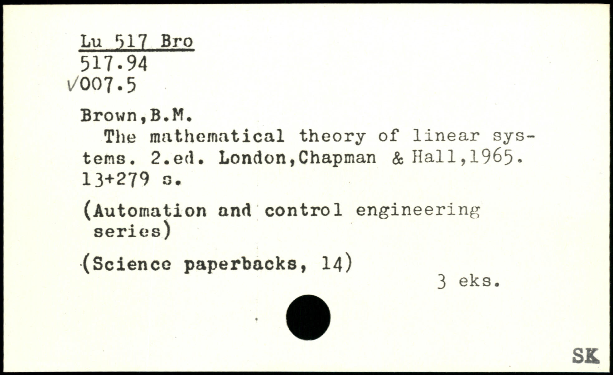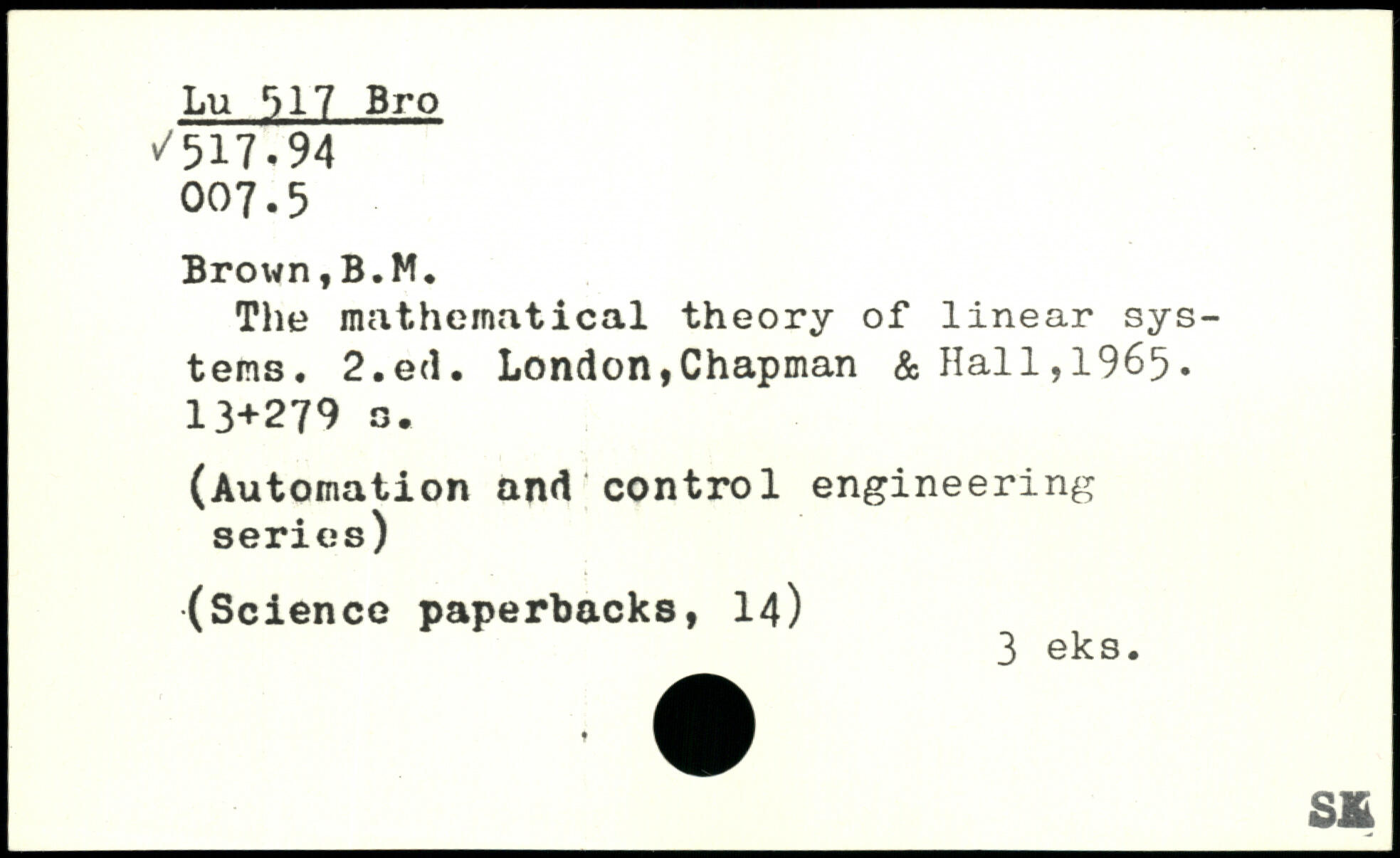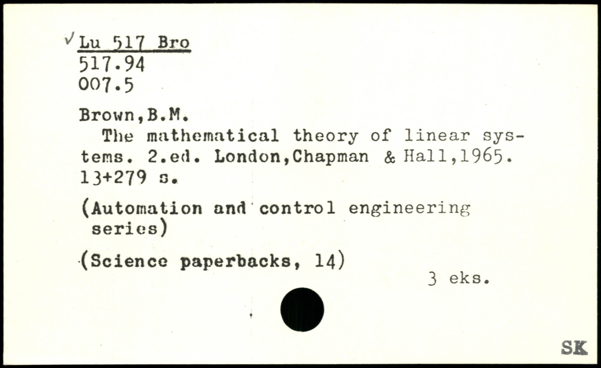 The mathematical theory of linear systems.