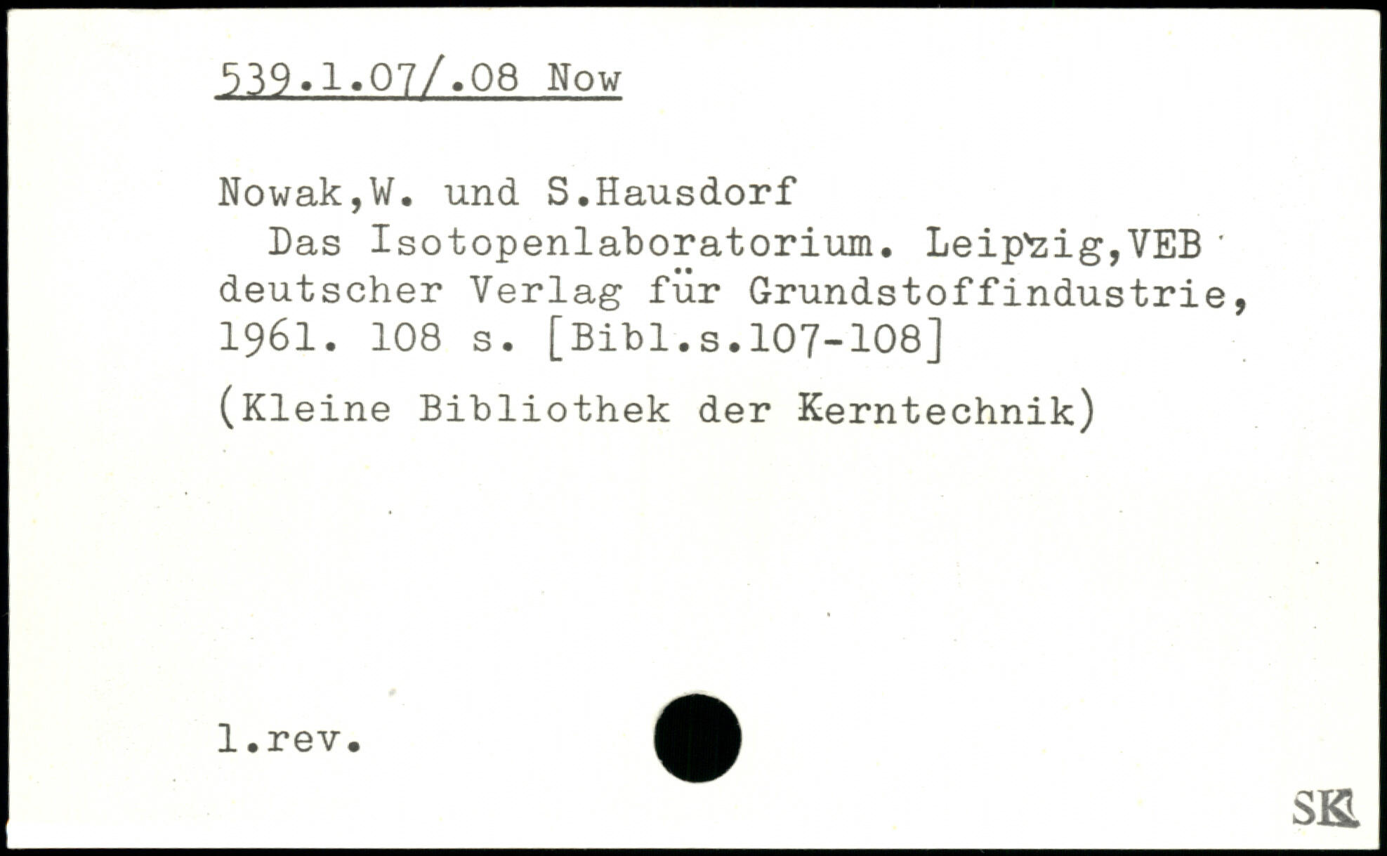 Das Isotopenlaboratorium. Leip'zig,VEB ' deutscher Verlag für Grundstoffindustrie, 1961.
