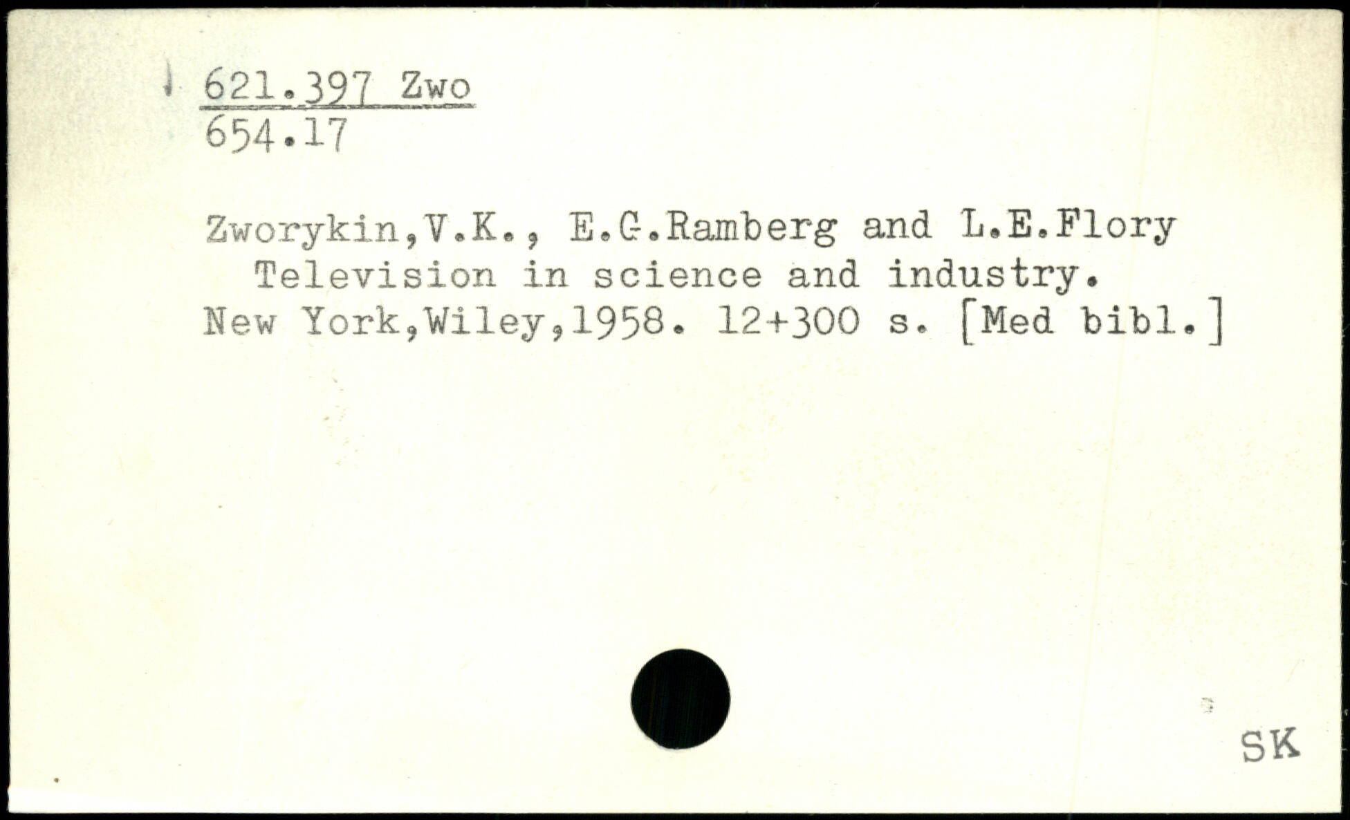Zworykin,Y.K., E.G.Ramberg and L.E.Flory Television in science and industry.