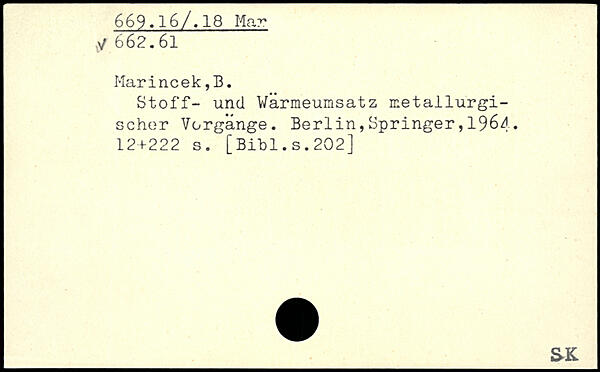 Stoff- und Warmeumsatz metallurgischer Vorgänge.