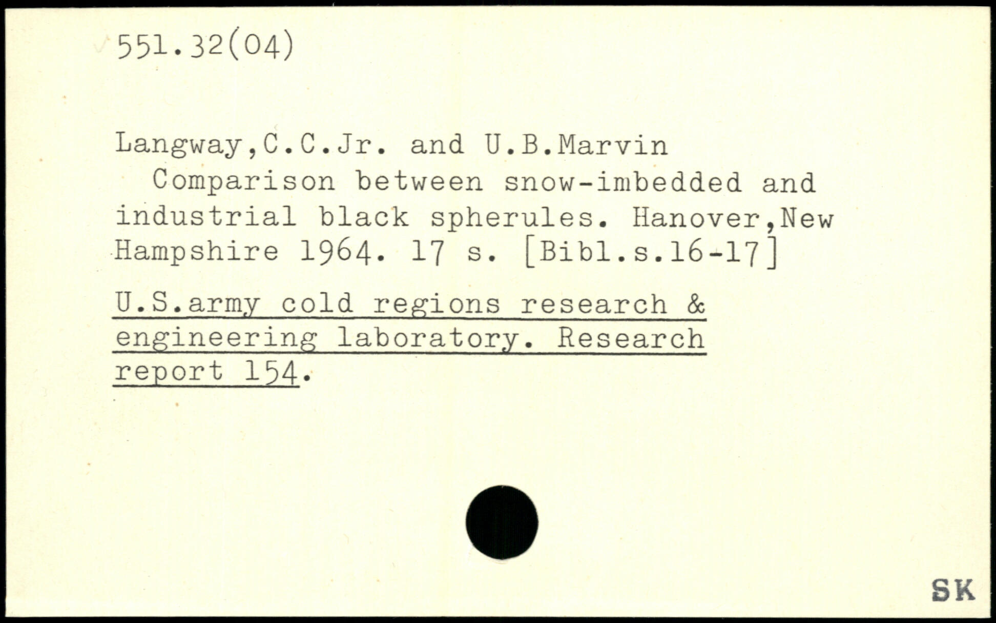 Langway,C.C.Jr. and U.B.Marvin Comparison between snow-imbedded and industrial black spherules. Hanover,New Hampshire 1964.