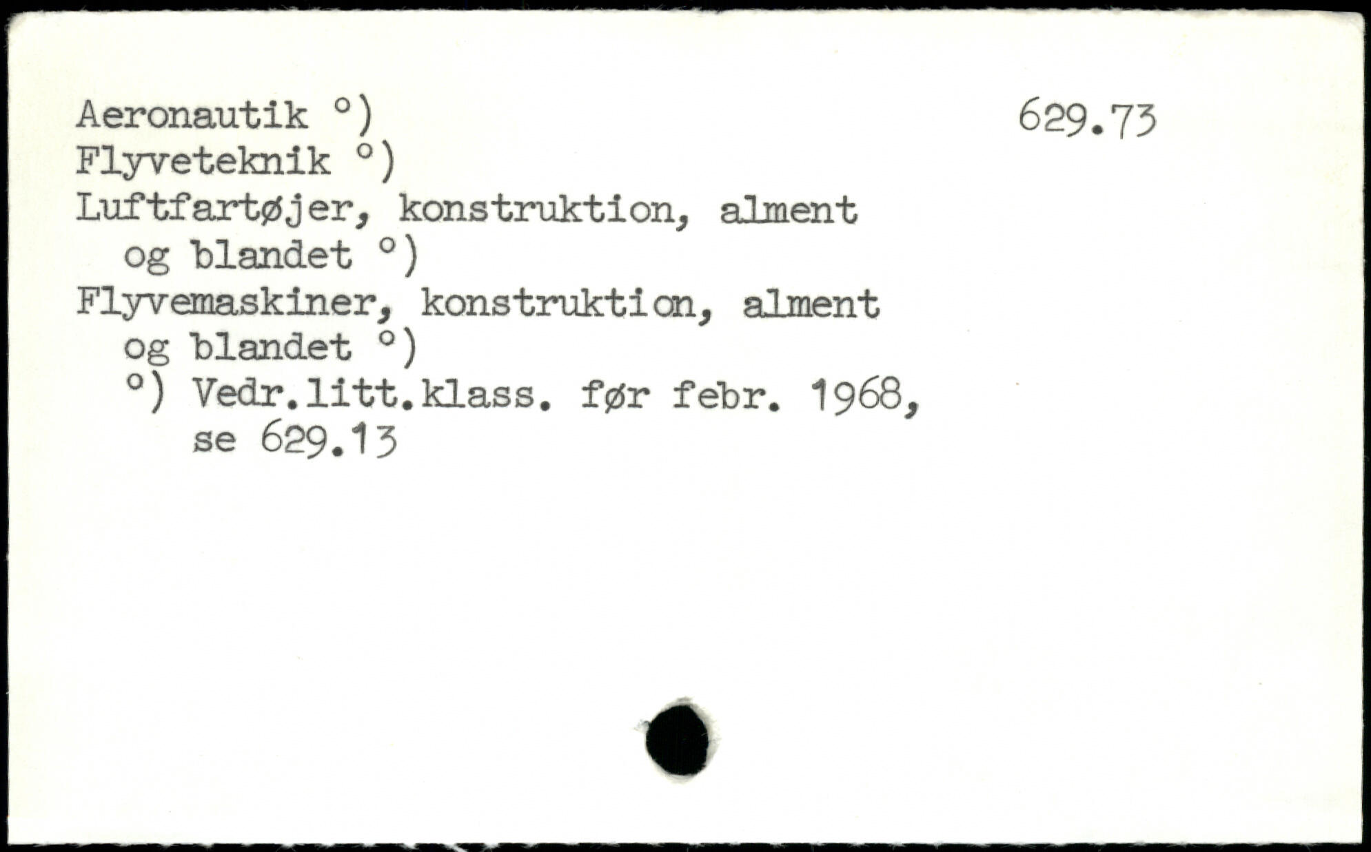 Flyveteknik .) Luftfartøjer, konstruktion, alment og blandet .) Flyvemaskiner, konstruktion, alment og blandet .) .) Vedr.litt.klass. før febr. 1968, se 629.13
