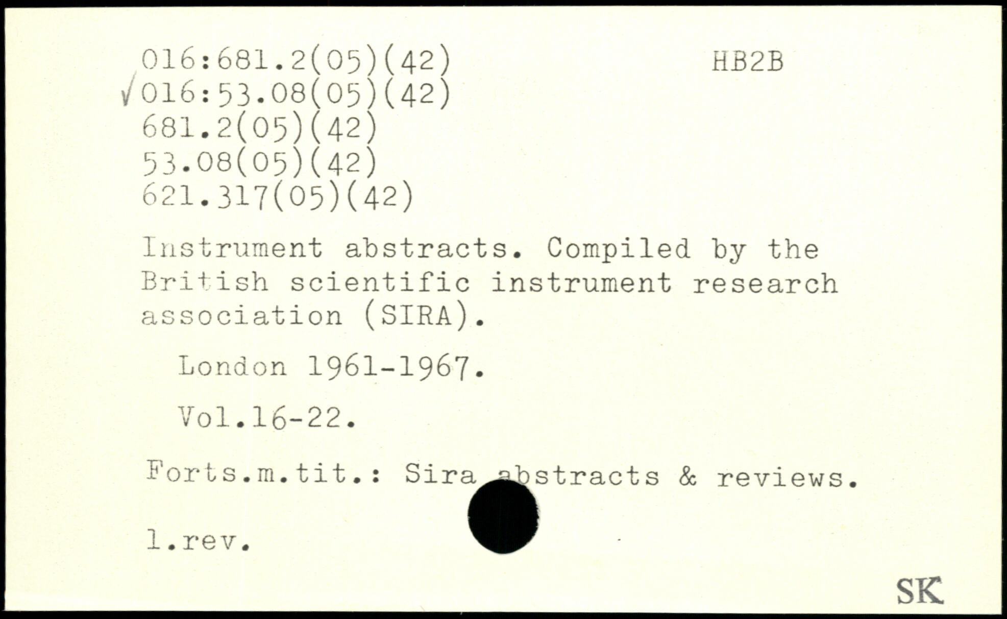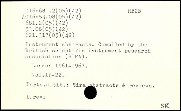 Instrument abstracts. Compiled by the British scientific instrument research association (SIRA).