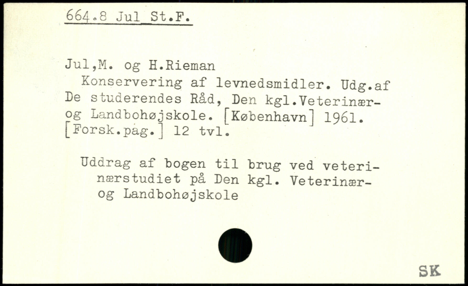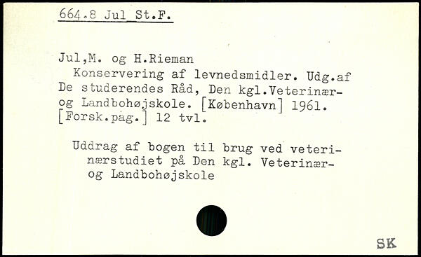 Konservering af levnedsmidler. Udg.af De studerendes Råd, Den kgl.Veterinær-og Landbohøjskole.