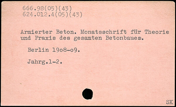 Armierter Beton. Monatsschrift für Theorie und Praxis des gesamten Betonbaues. Berlin 19o8-o9. Jahrg.1-2.