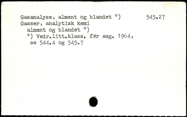 Gasanalyse, alment og blandet .) 543.27 Gasser, analytisk kemi alment og blandet .) .) Vedr.litt.klass. før aug. 19^4, se 544.4 og 545.7