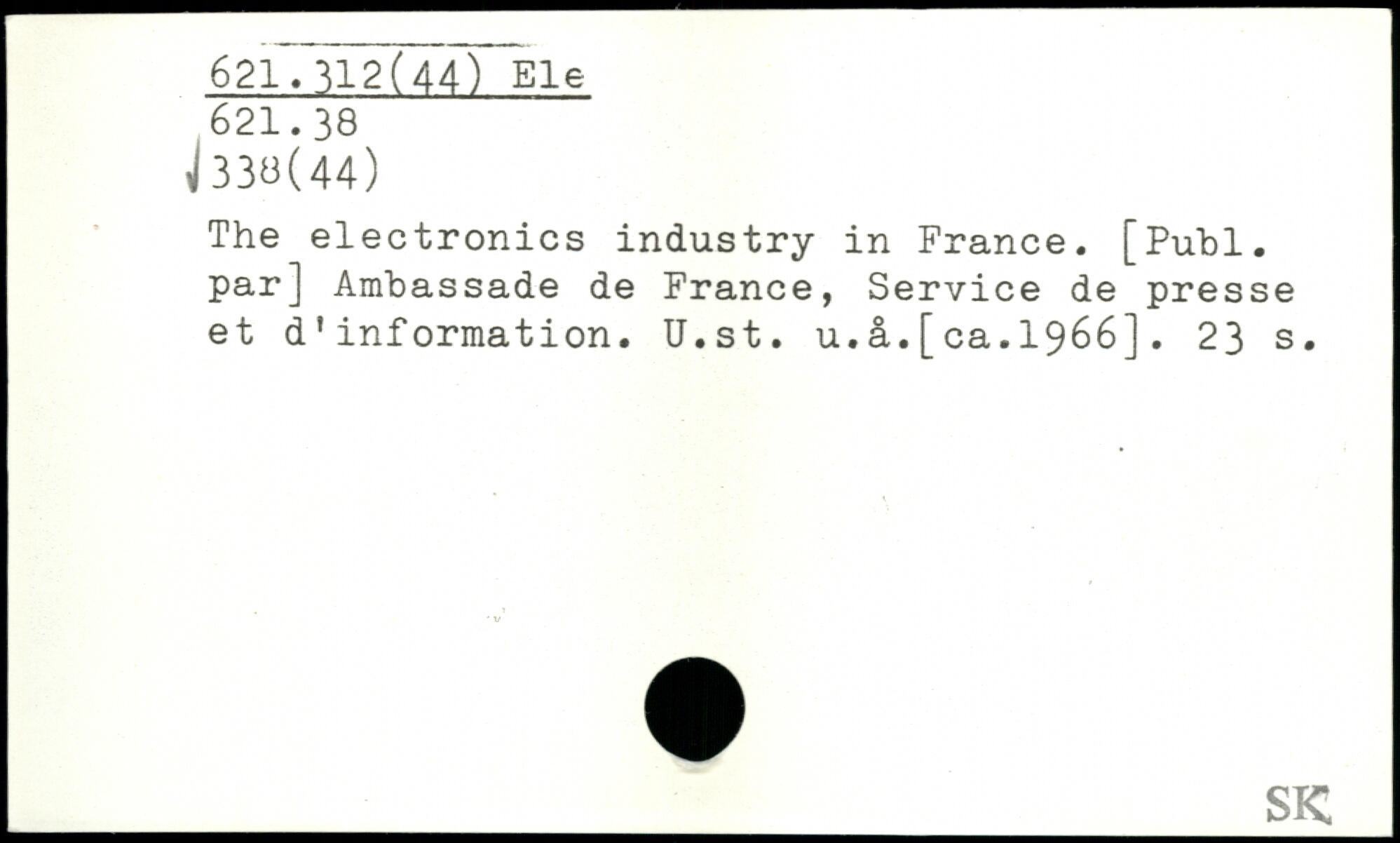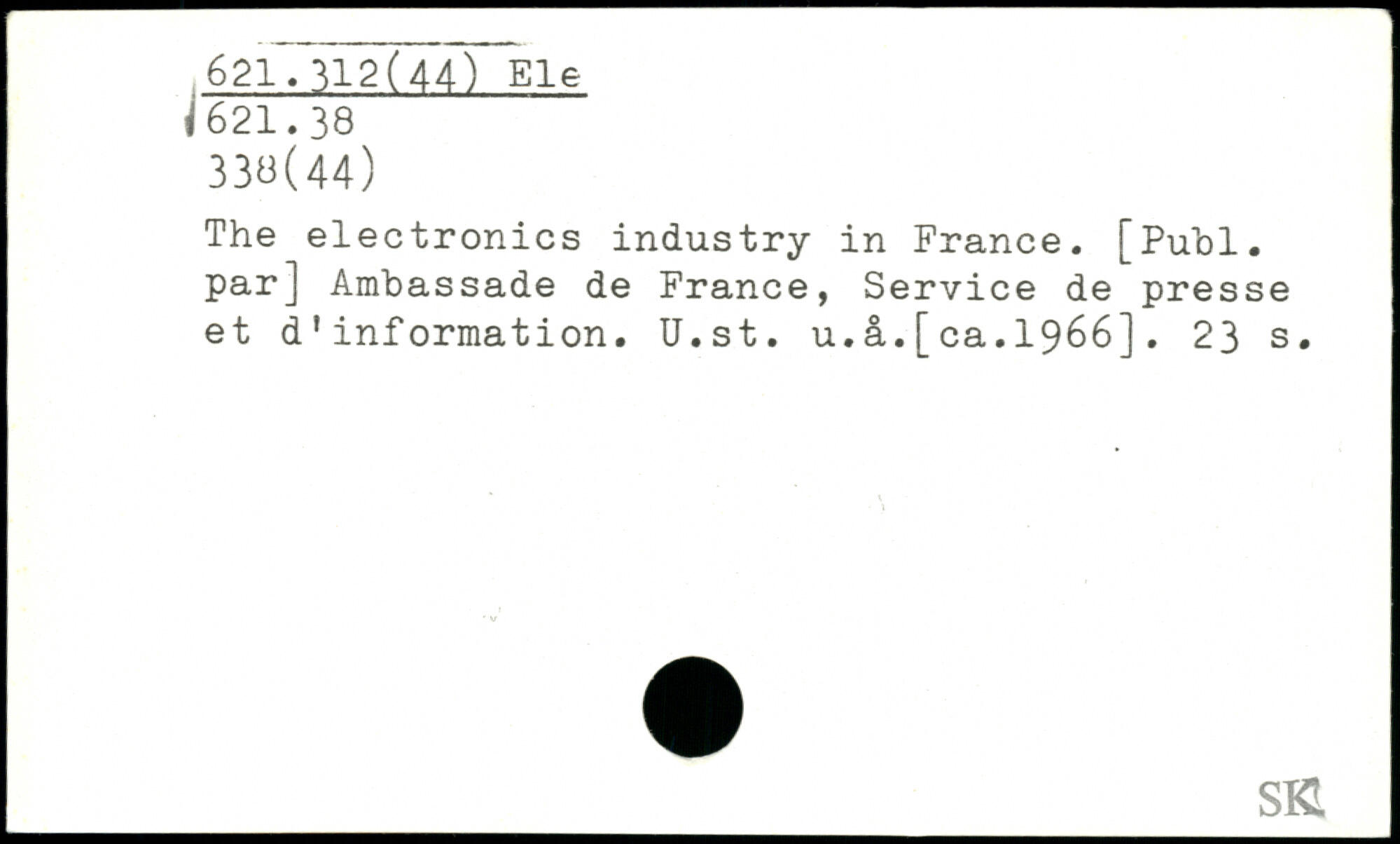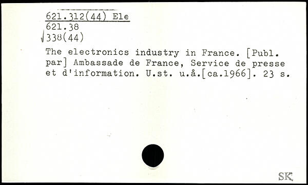 The electronics industry in France. [Publ. par] Ambassade de France, Service de presse et d'information. U.st. u.â.[ca.1966].