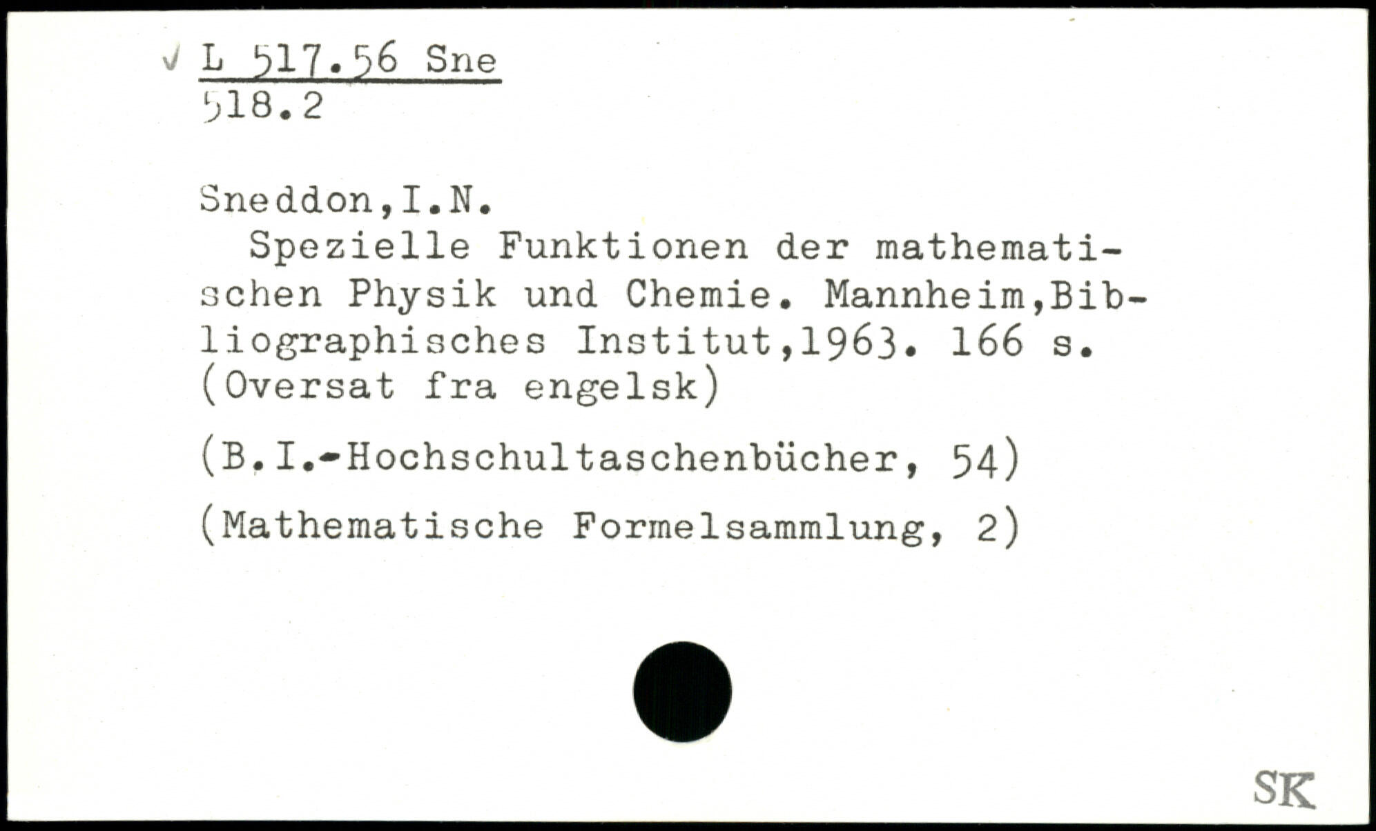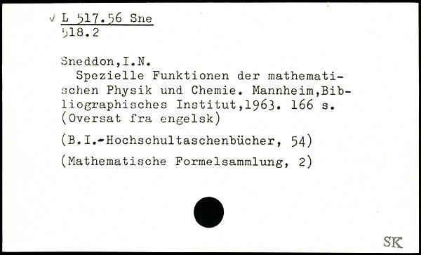 Spezielle Funktionen der mathematischen Physik und Chemie.