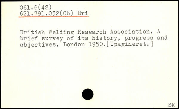British Welding Research Association. A brief survey of its history, progress and objectives.