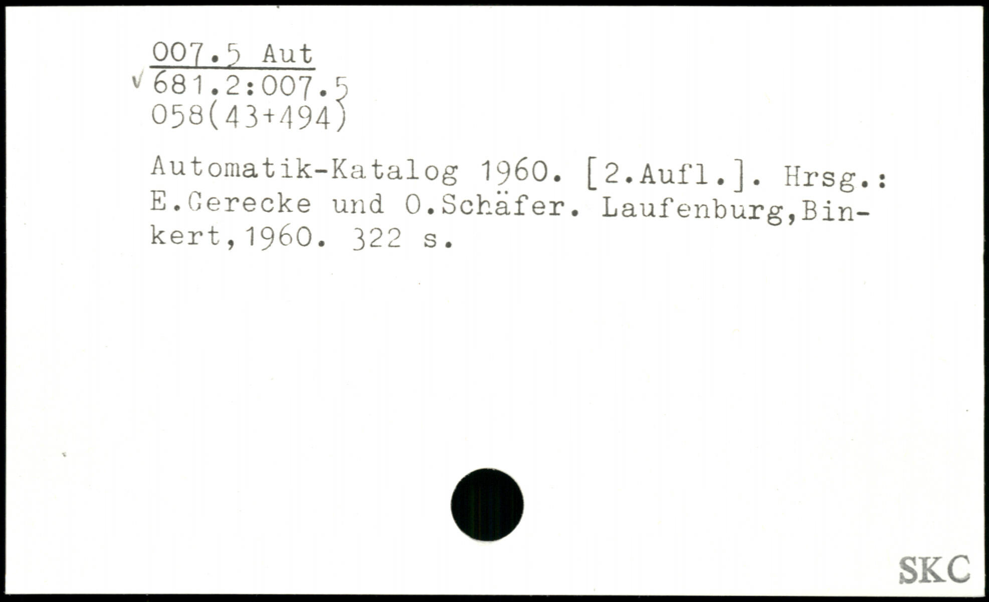 Automatik-Katalog 1960. [