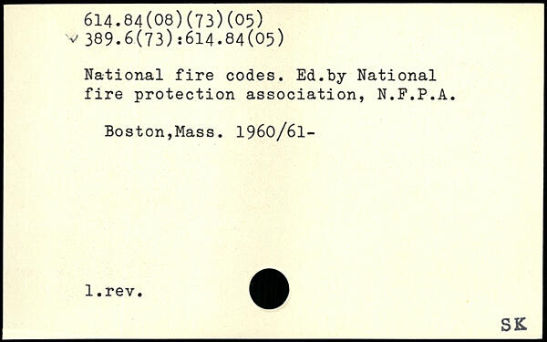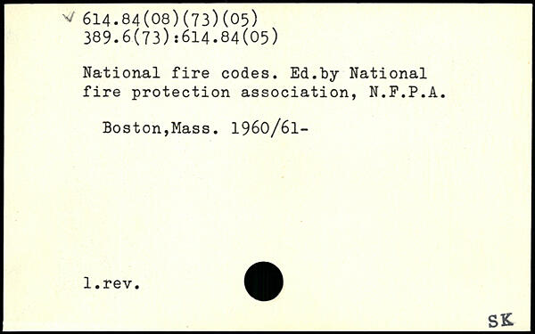 National fire codes. Ed.by National fire protection association, N.F.P.A. Boston,Mass. 1960/6I-