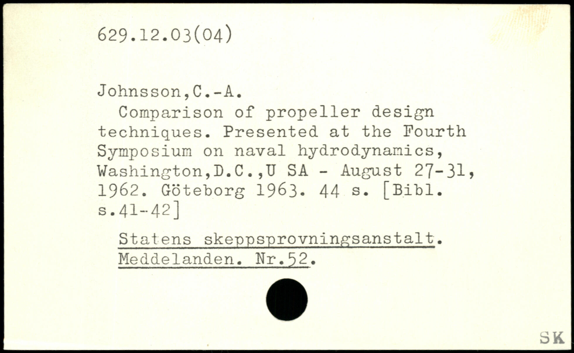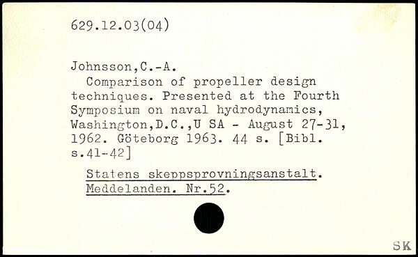 Comparison of propeller design techniques. Presented at the Fourth Symposium on naval hydrodynamics, Washington,D.C.,U SA - August 27-31, 1962. Göteborg 1963.