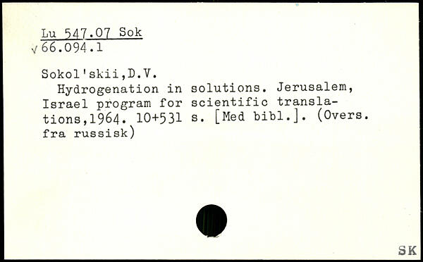 Sokol1skii,D.V. Hydrogenation in solutions. Jerusalem, Israel program for scientific transla-tions,1964.