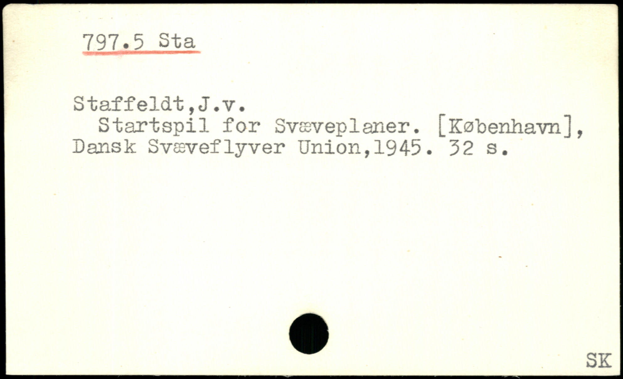 Startspil for Svæveplaner. [København], Dansk Svæveflyver Union,1945.