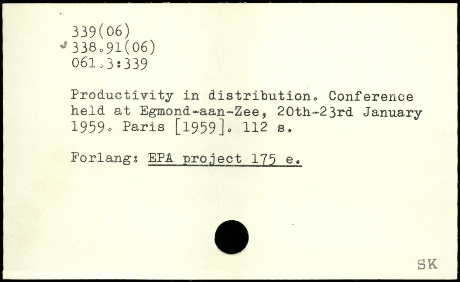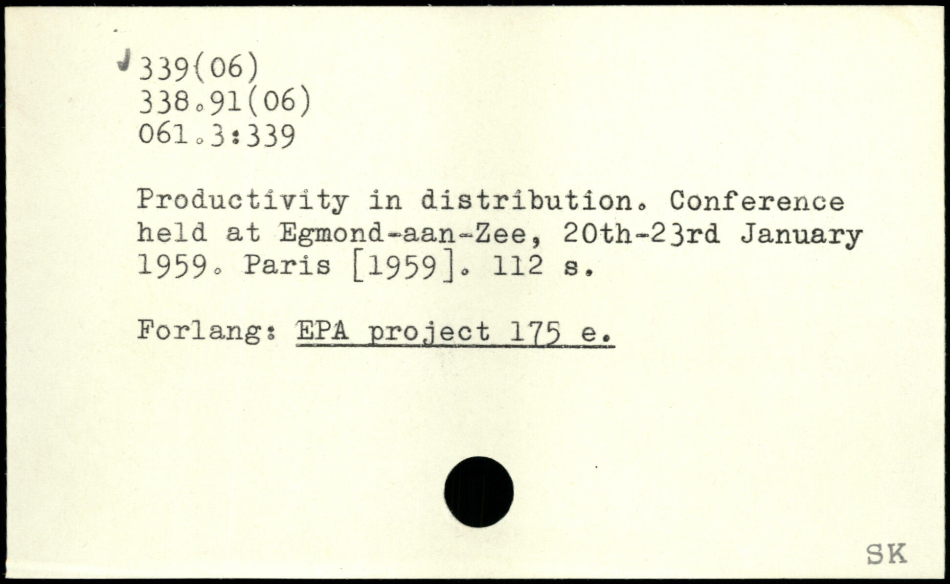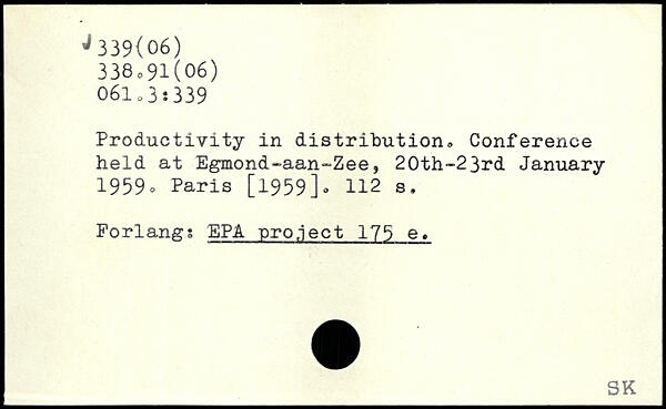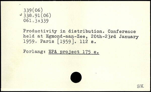 Productivity in distribution, Conference held at Egmond-aan~Zee, 20th-23rd January 1959-