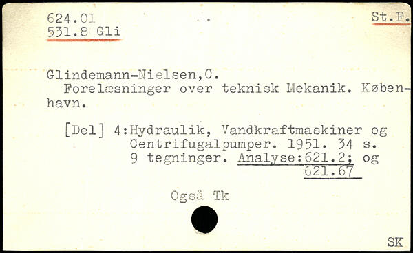 Forelæsninger over teknisk Mekanik. København. [Del] 4:Hydraulik, Vandkraftmaskiner og Gentrifugalpumper. 1951.