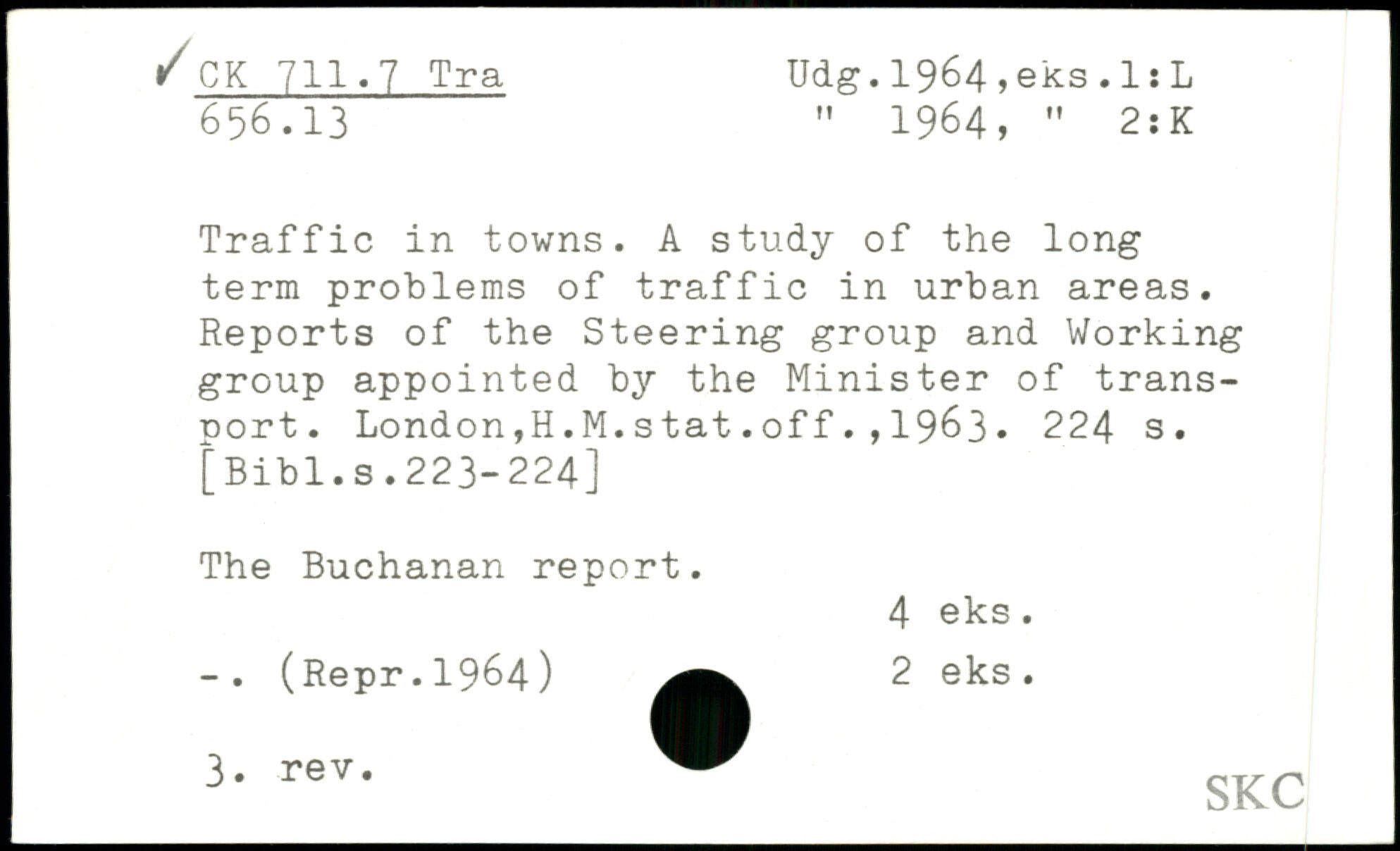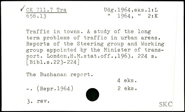Traffic in towns. A study of the long term problems of traffic in urban areas. Reports of the Steering group and Working group appointed by the Minister of transport. London,H.M.stat.off.,1963.