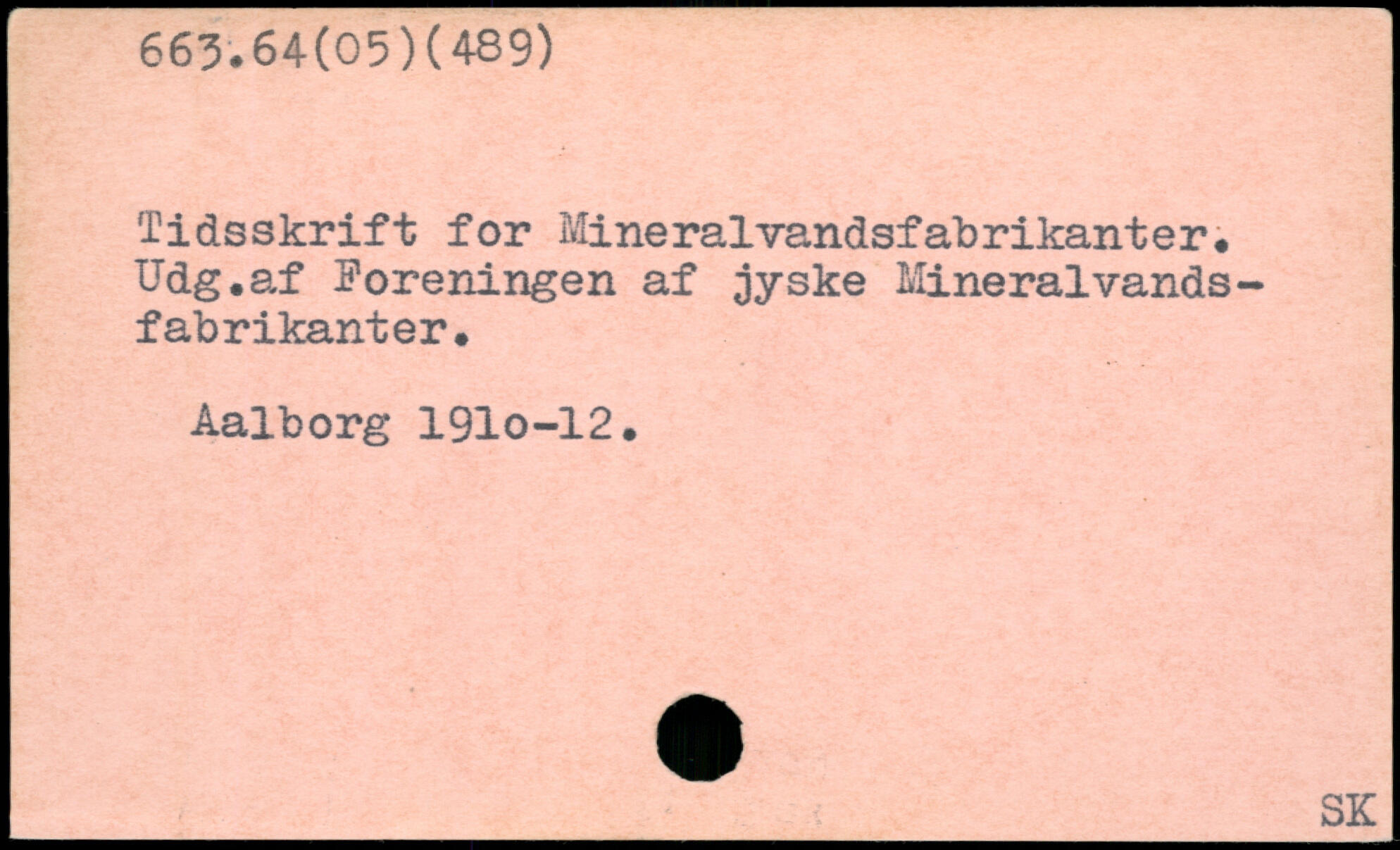 Tidsskrift for Mineralvandsfabrikanter. Udg.af Foreningen af jyske Mineralvands-fabrikanter.