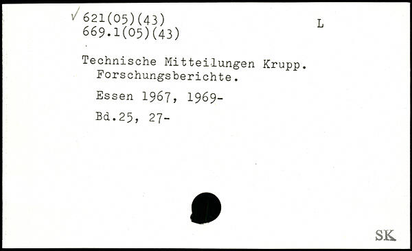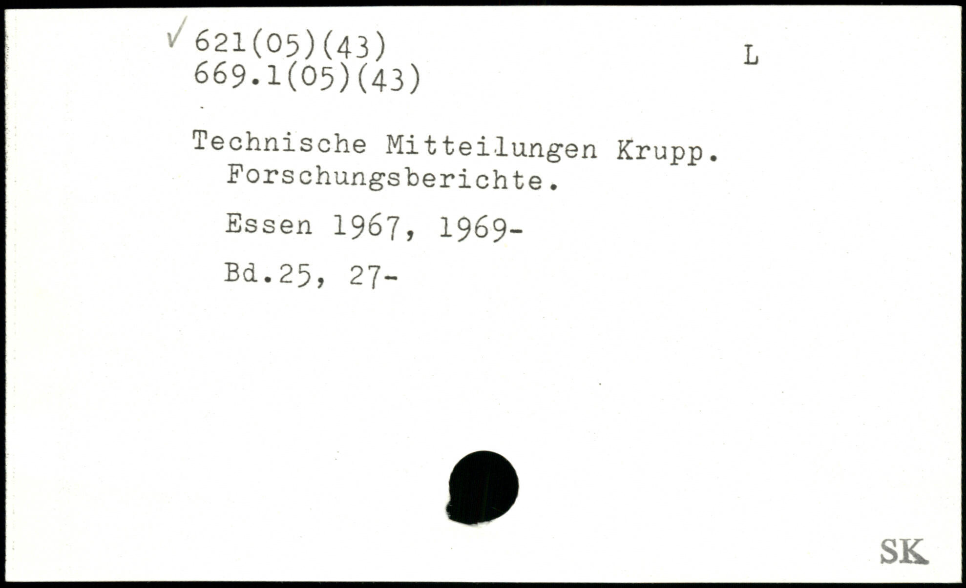 Technische Mitteilungen Krupp. Forschungsberichte. Essen 196 7, 1969-