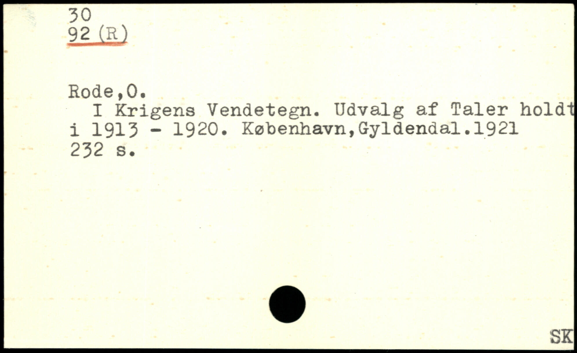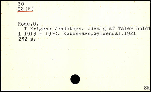 I Krigens Vendetegn. Udvalg af Taler holdt i 1913 - 1920. København,Gyldendal.1921