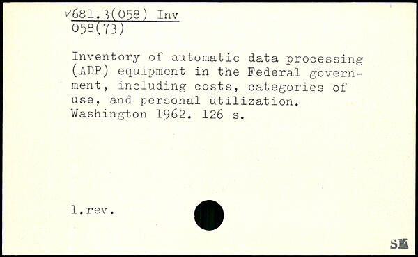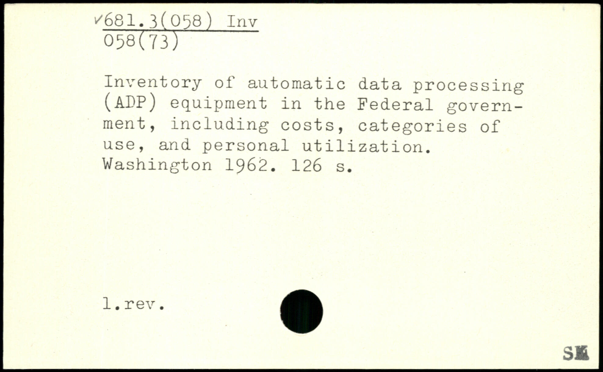 Inventory of automatic data processing (ADP) equipment in the Federal government, including costs, categories of use, and personal utilization.