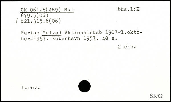 Marius Mulvad. Aktieselskab 1907-1. okto-ber-1957