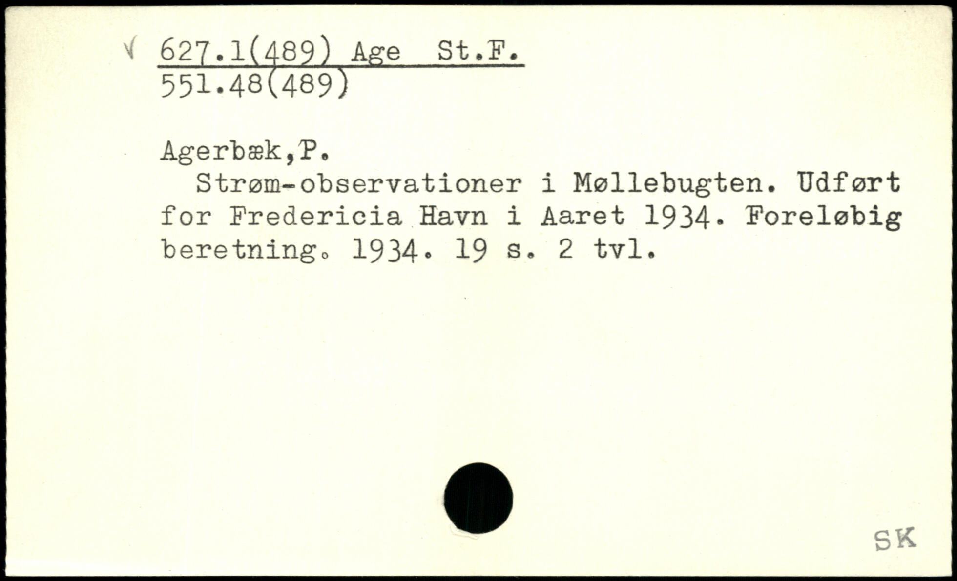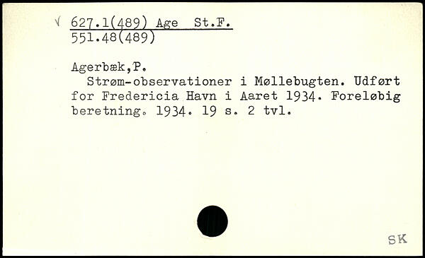 Strøm-observationer i Møllebugten. Udført for Fredericia Havn i Aaret 1934, Foreløbig beretningo 1934.