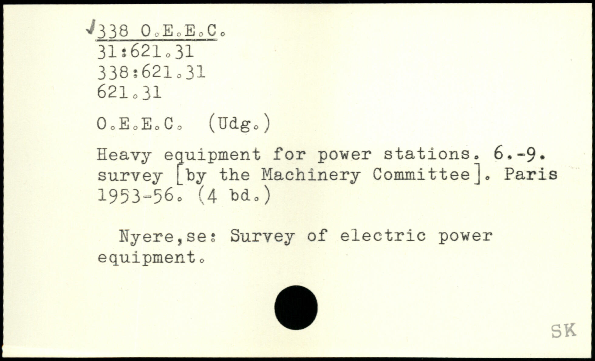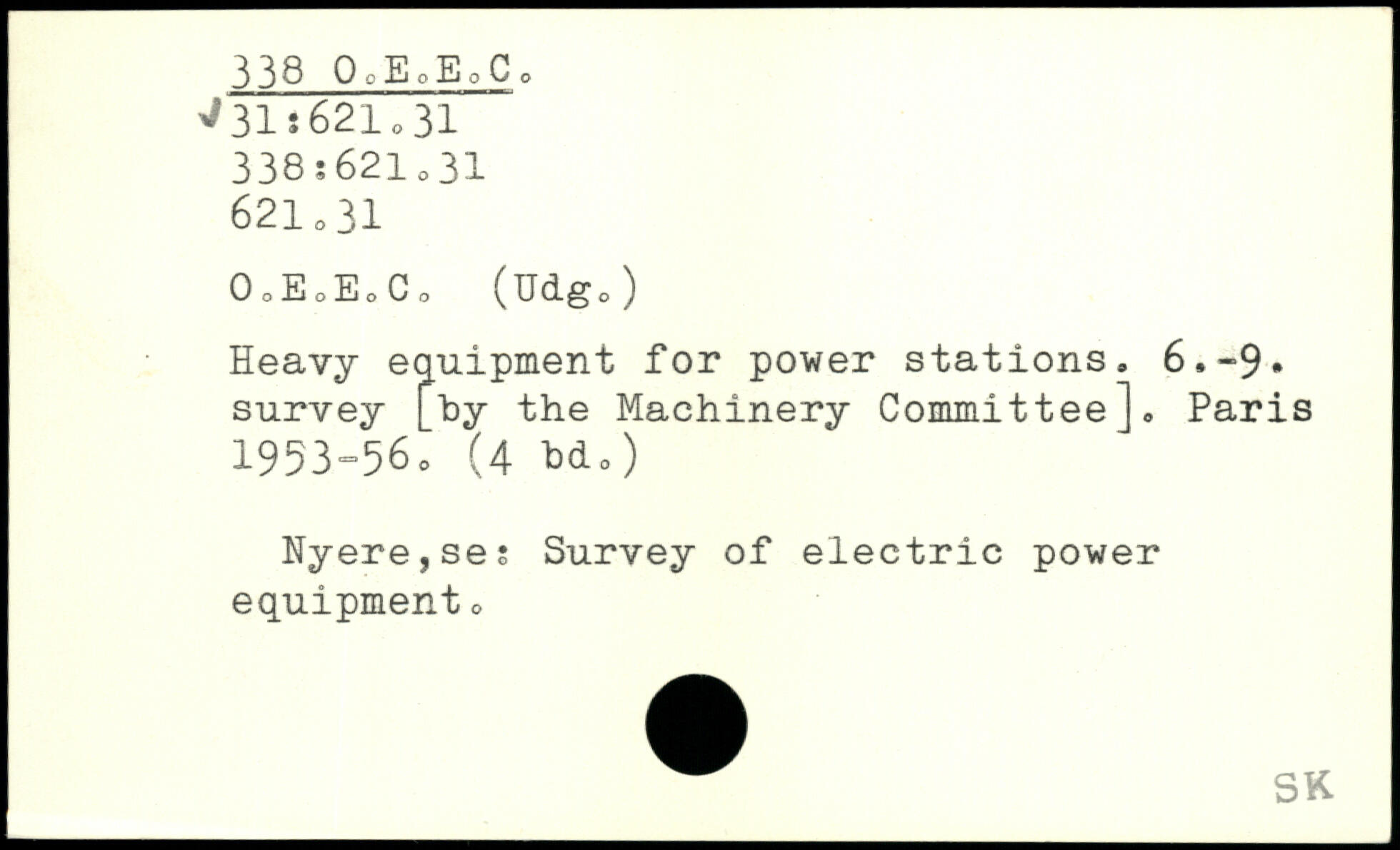 Heavy equipment for power stations. 6,-9. survey [by the Machinery Committee],