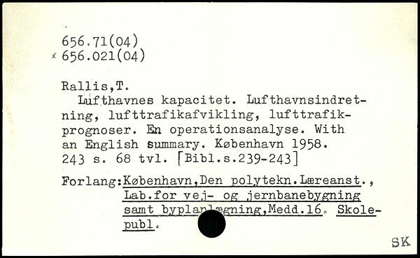 Lufthavnes kapacitet. Lafthavnsindretning, lufttrafikafvikling, lufttrafikprognoser. En operationsanalyse. With an English Summary.