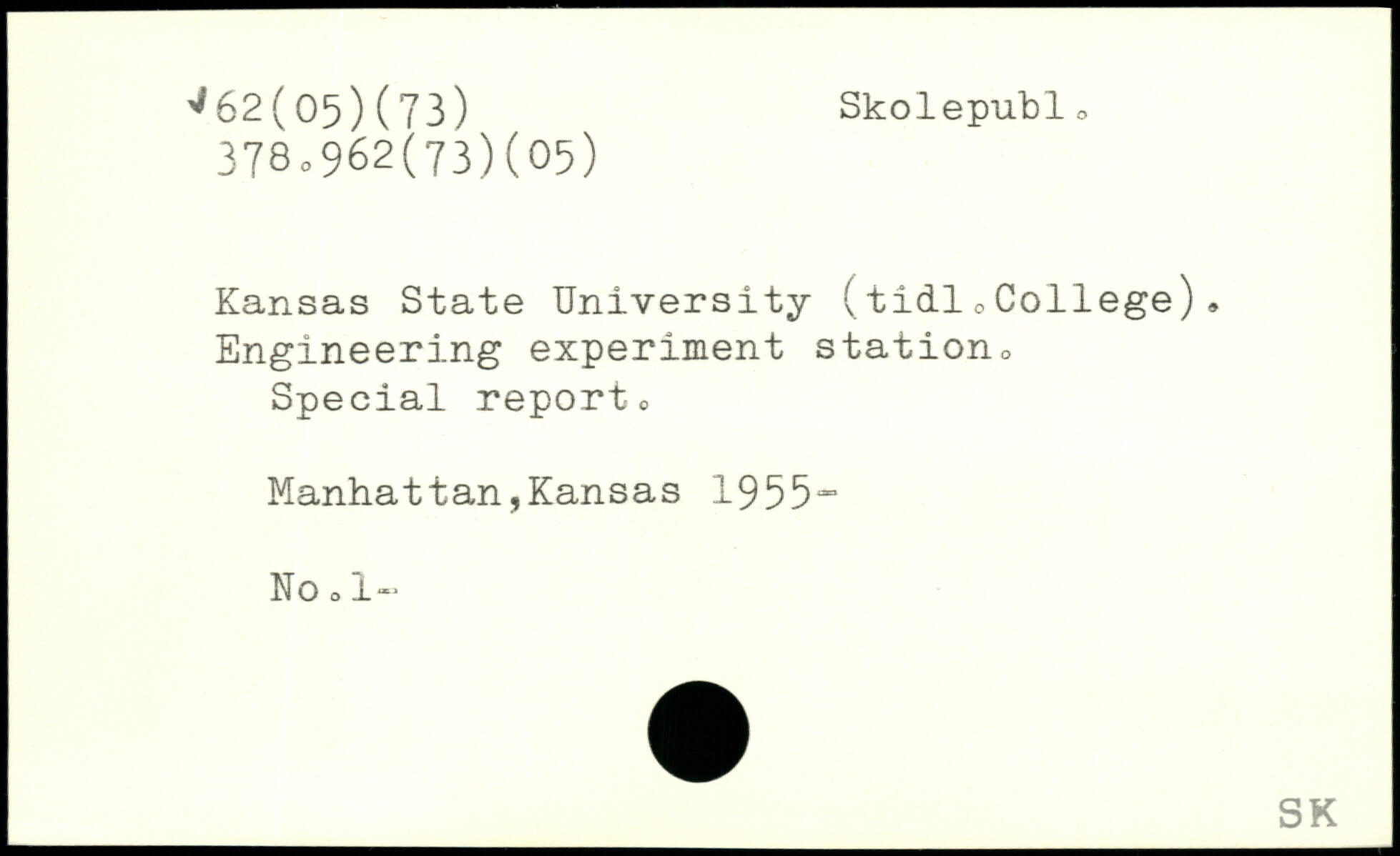 Kansas State University (tidl0College). Engineering experiment station, Special report, Manhattan,Kansas 1955“ No o 1“