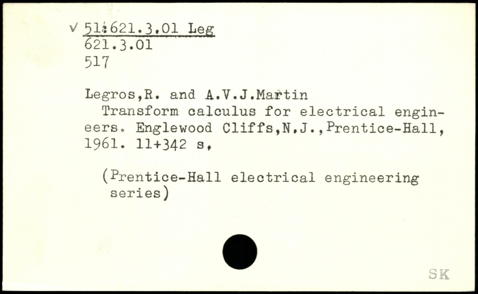 Transform calculus for electrical engineers. Englewood Cliffs,N