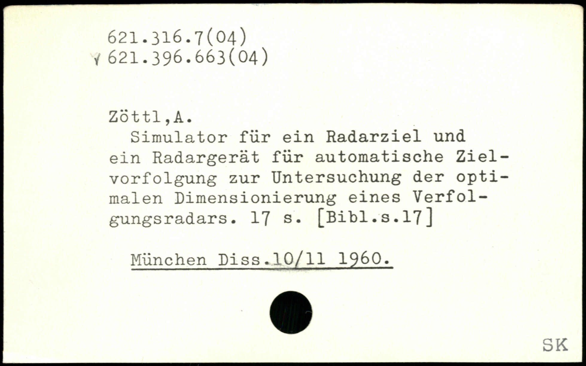 Simulator für ein Radarziel und ein Radargerät für automatische Ziel-vorfolgung zur Untersuchung der optimalen Dimensionierung eines Verfolgungsradars.