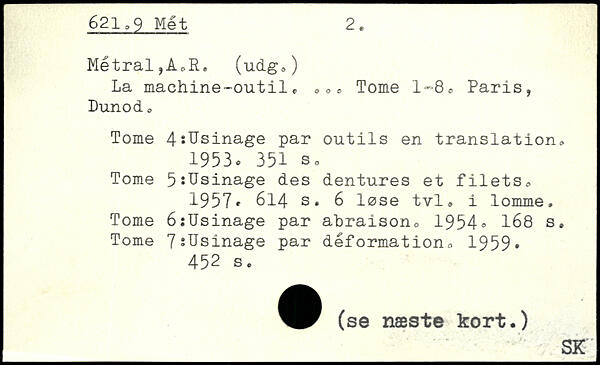 La machine-outil, OOB Tome 1-8, Paris, Dunodo Tome 4sPsinage par outils en translation, 1953.