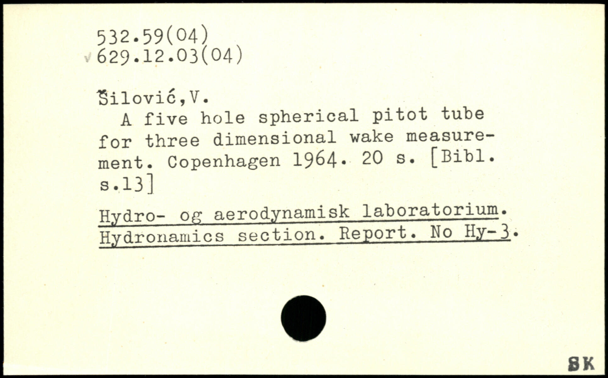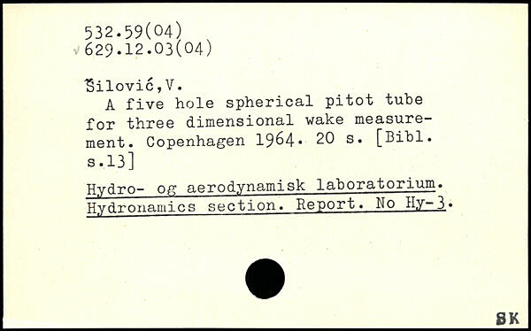 A five hole spherical pitot tube for three dimensional wake measurement.