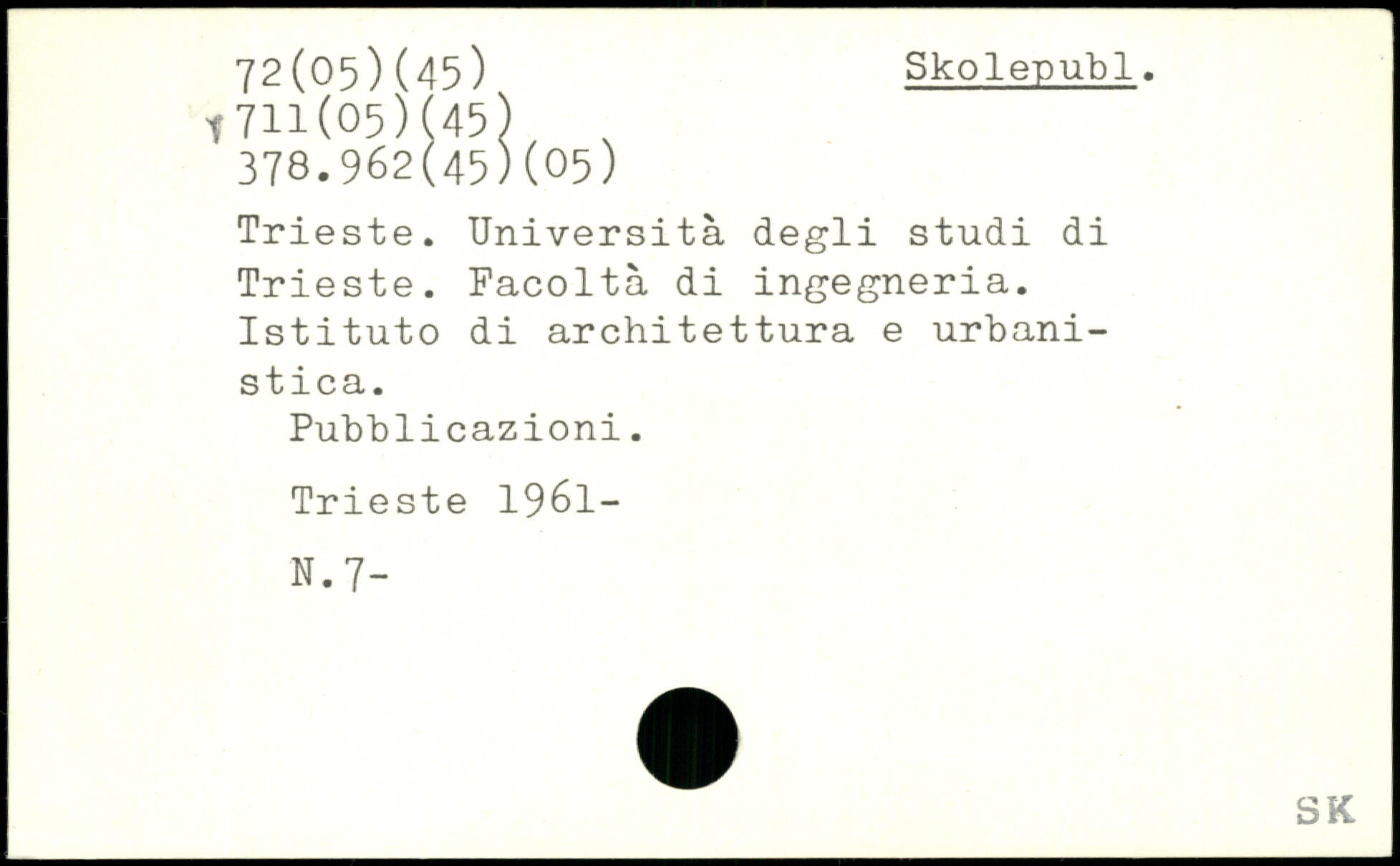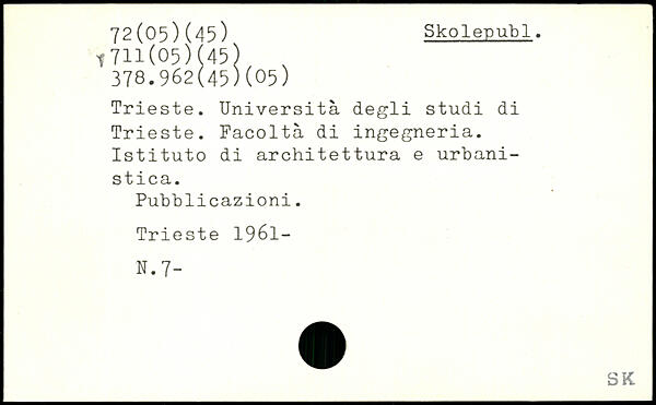 Trieste. Universita degli studi di Trieste. Facolta di ingegneria. Istituto di architettura e urbanist ica. Pubblicazioni. Trieste 1961- N.7-