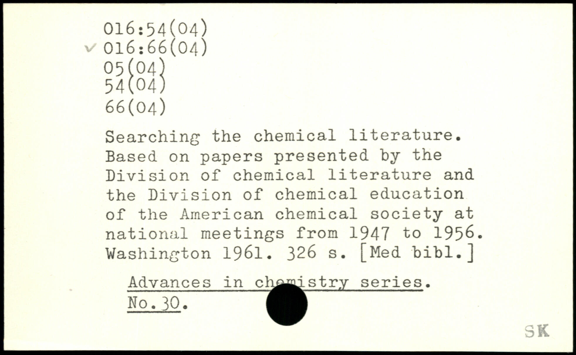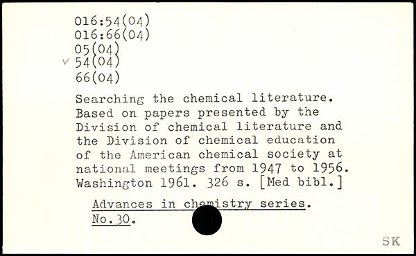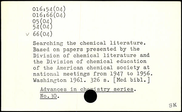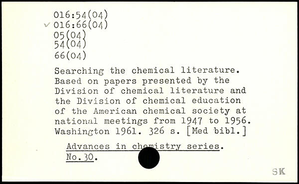 Searching the chemical literature. Based on papers presented by the Division of chemical literature and the Division of chemical education of the American chemical society at national meetings from 1947 to 1956.
