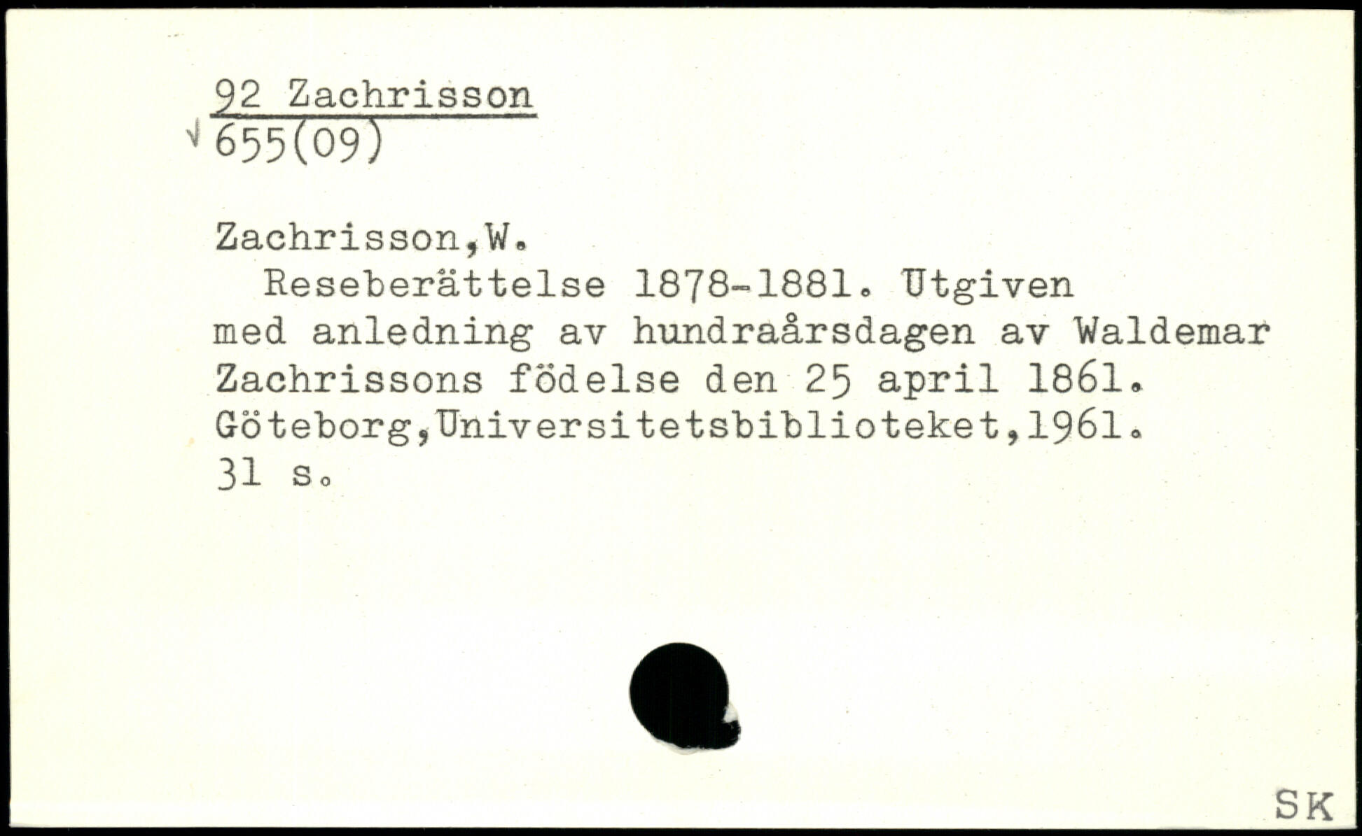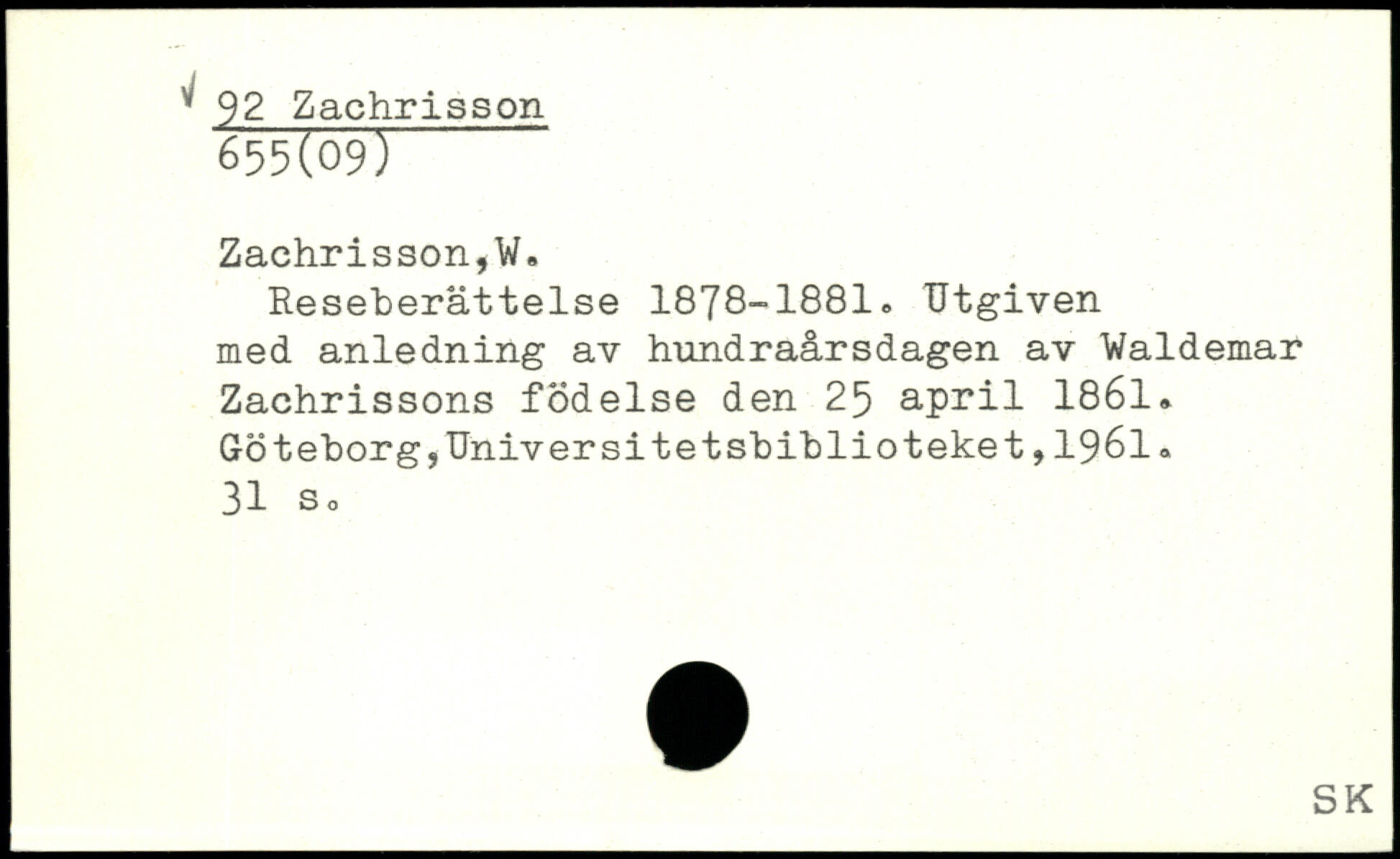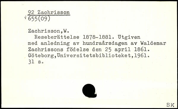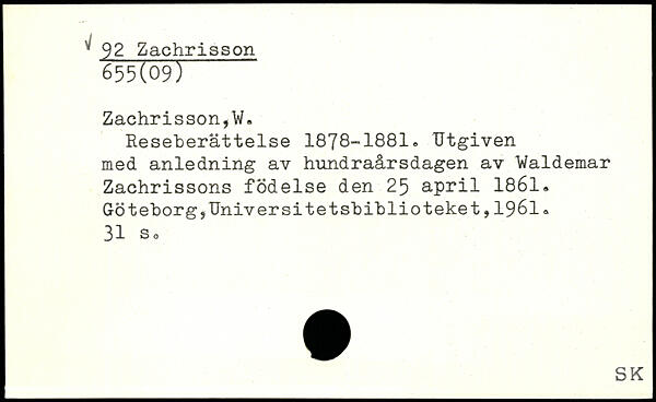 Reseberättelse 1878-1881, Utgiven med anledning av hundraårsdagen av Waldemar Zachrissons födelse den 25 april 1861.
