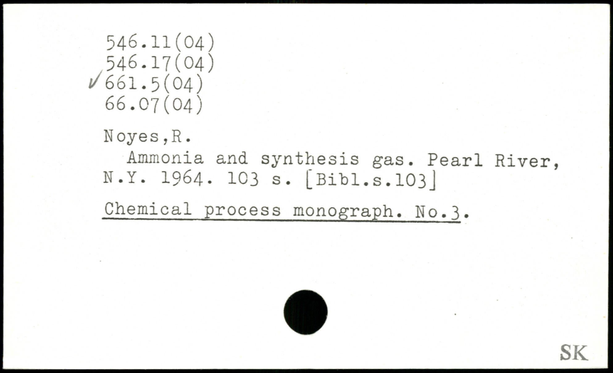 Ammonia and synthesis gas. Pearl River, N.Y. 1964.