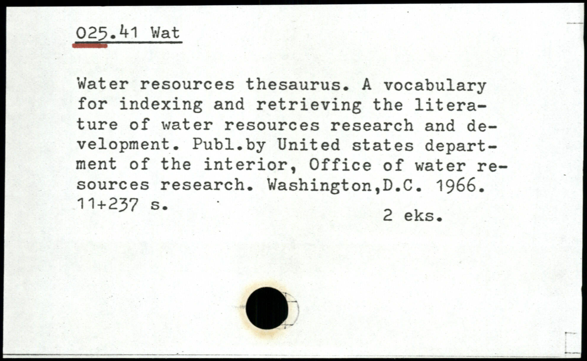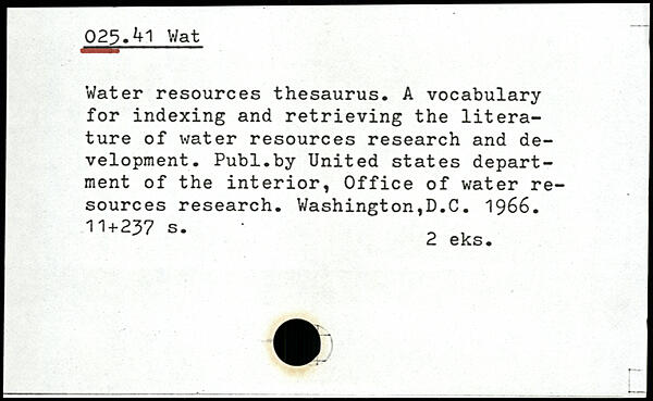Water resources thesaurus. A vocabulary for indexing and retrieving the literature of water resources research and development.