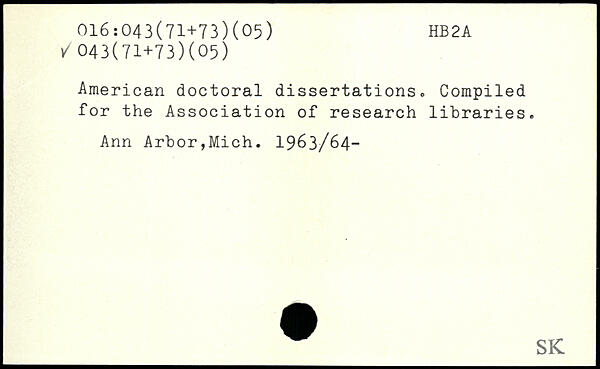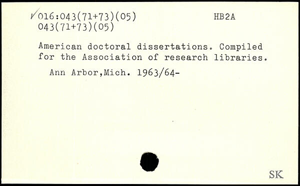 American doctoral dissertations. Compiled for the Association of research libraries. Ann Arbor,Mich. 1963/64-