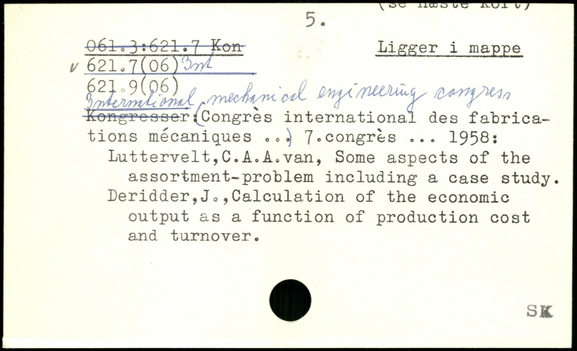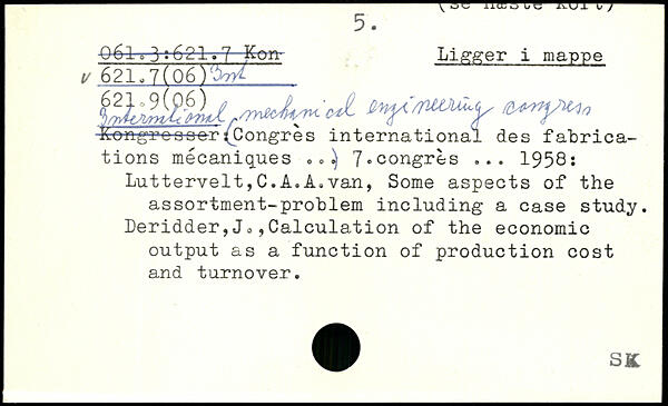 V h® a ue mji i ) 5. ■06l q 3. 621 .rJ Kern- Linger i mappe v 621.7(06V^ tof'rmxLy k-ere-grca^e-r(Congres international des fabrications mécaniques. 7,congrès ... 1958; Luttervelt,C.A.A.van, Some aspects of the assortment-problem including a case study, beridder,Jo,Calculation of the economic output as a function of production cost and turnover.