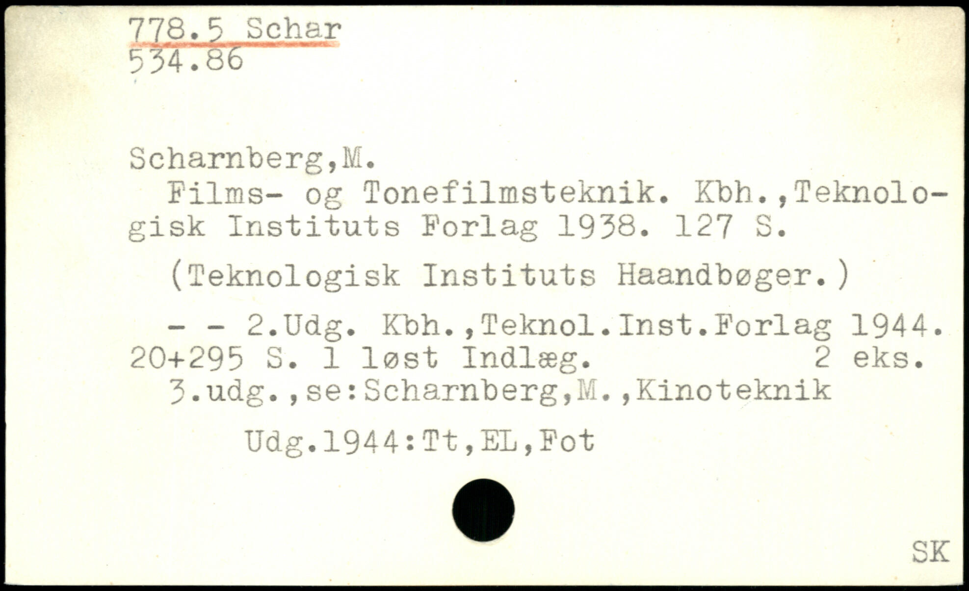 Films- og Tonefilmsteknik. KbhTeknologisk Instituts Forlag 1938.
