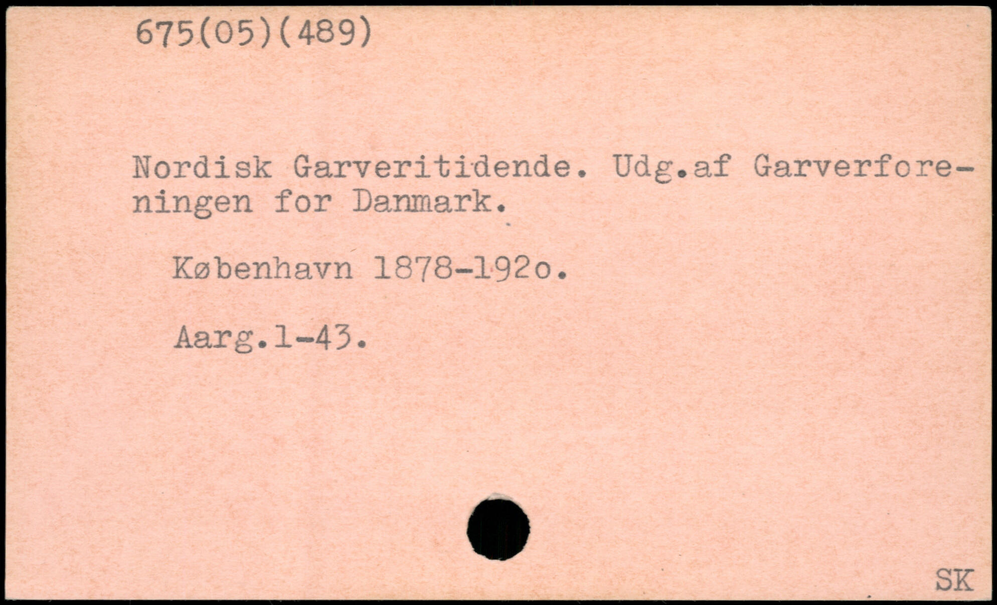 Nordisk Garveritidende. Udg.af Garverforeningen for Danmark.