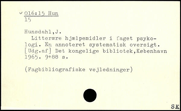 Litterære hjælpemidler i faget psykologi. En annoteret systematisk oversigt. [Udg.af] Det kongelige bibliotek