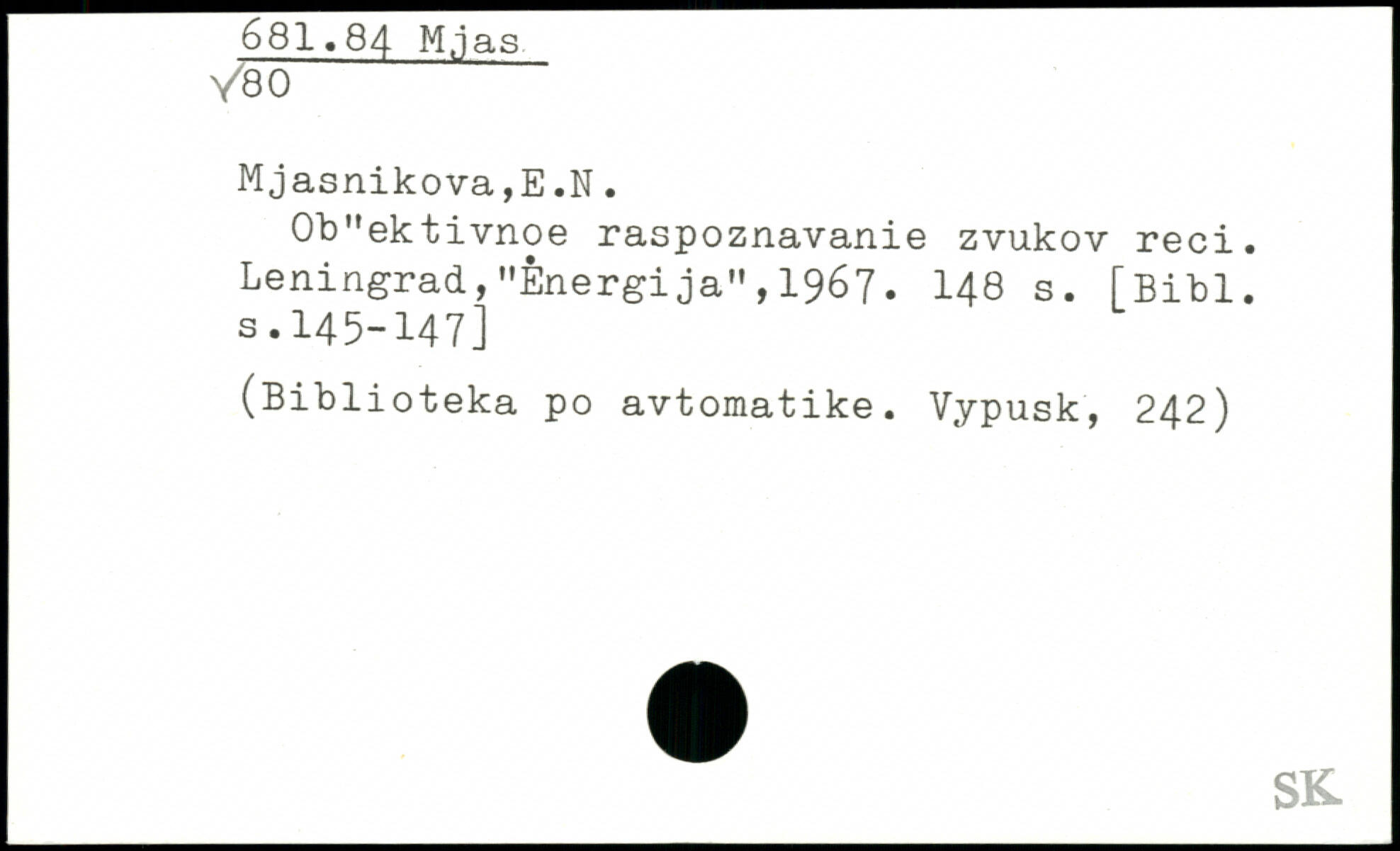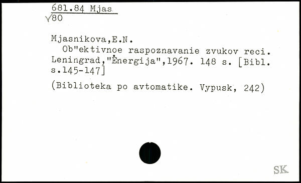 Ob"ektivnoe raspoznavanie zvukov reci. Leningrad,"Energija",1967. I