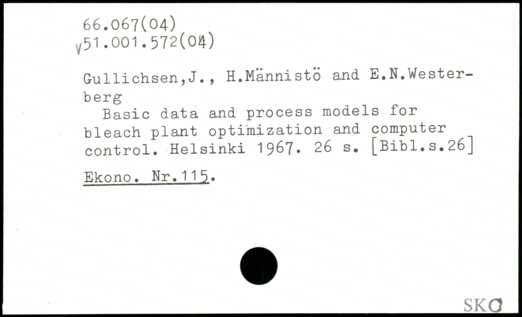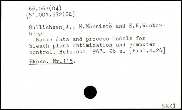 Basic data and process models for bleach plant optimization and computer control. Helsinki 19^7