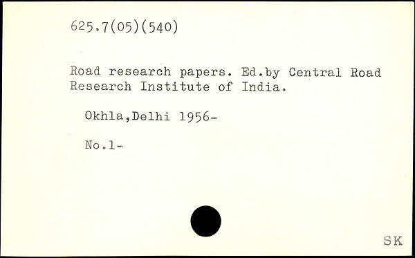 Road research papers. Ed.by Central Road Research Institute of India. Okhla,Delhi 1956- No. 1-